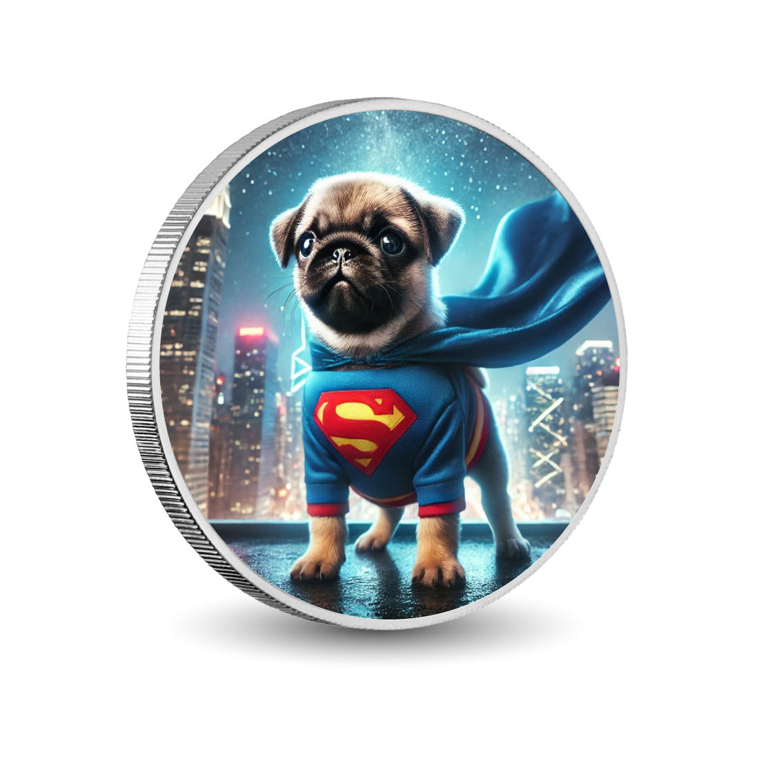 Please note: The obverse of the coin is subject to change at any time.Super Pug to the Rescue! 1oz Silver Coloured Coin