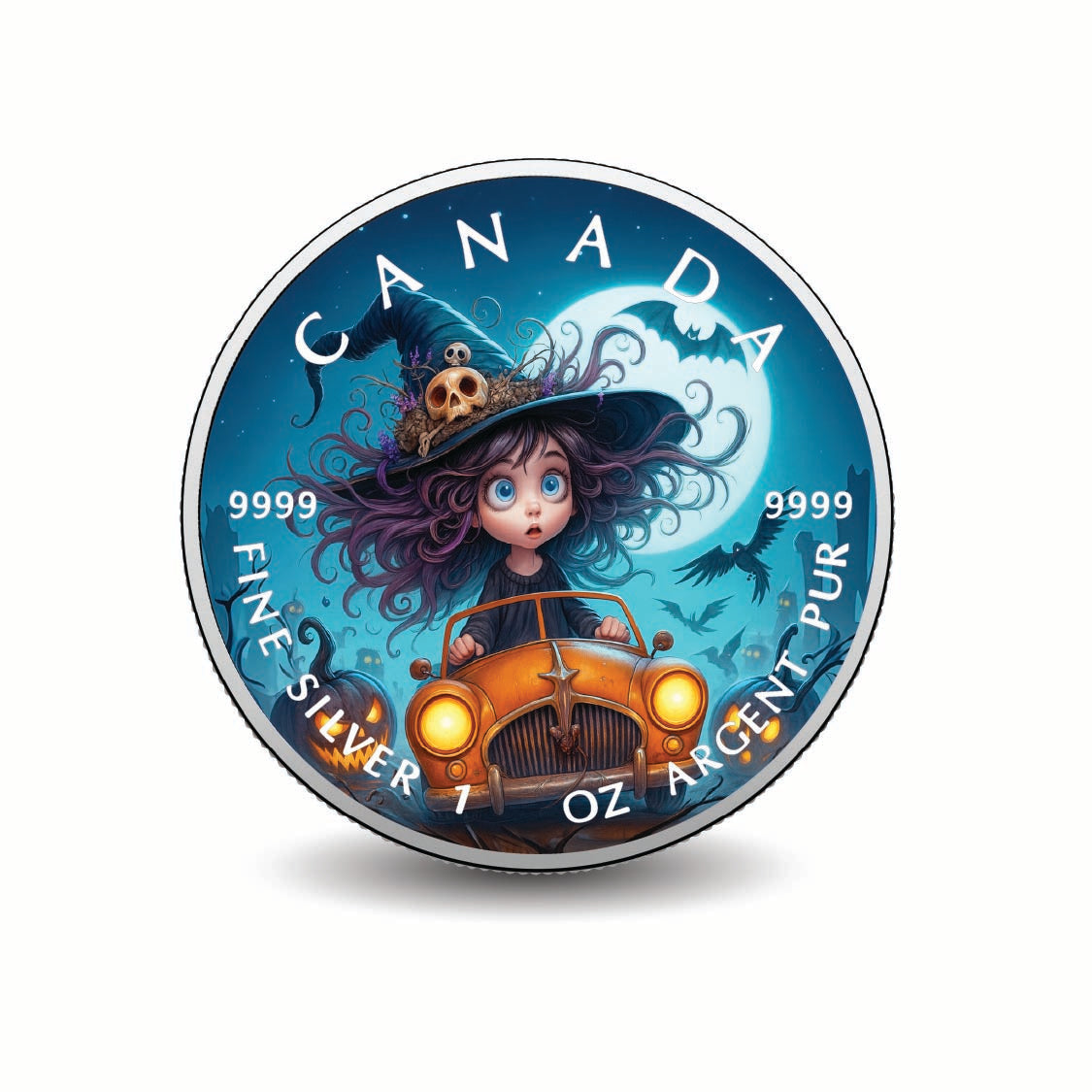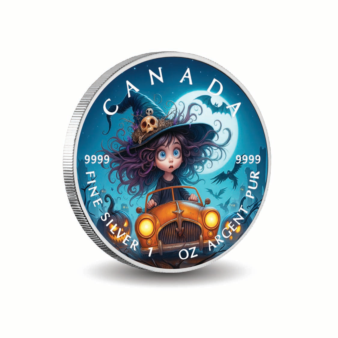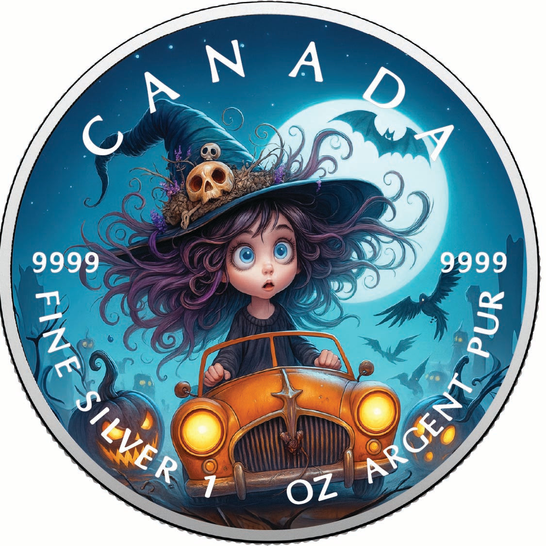2025 Canada 1oz 9999 Silver BU Midnight Mischief Witch on Wheels Colourized