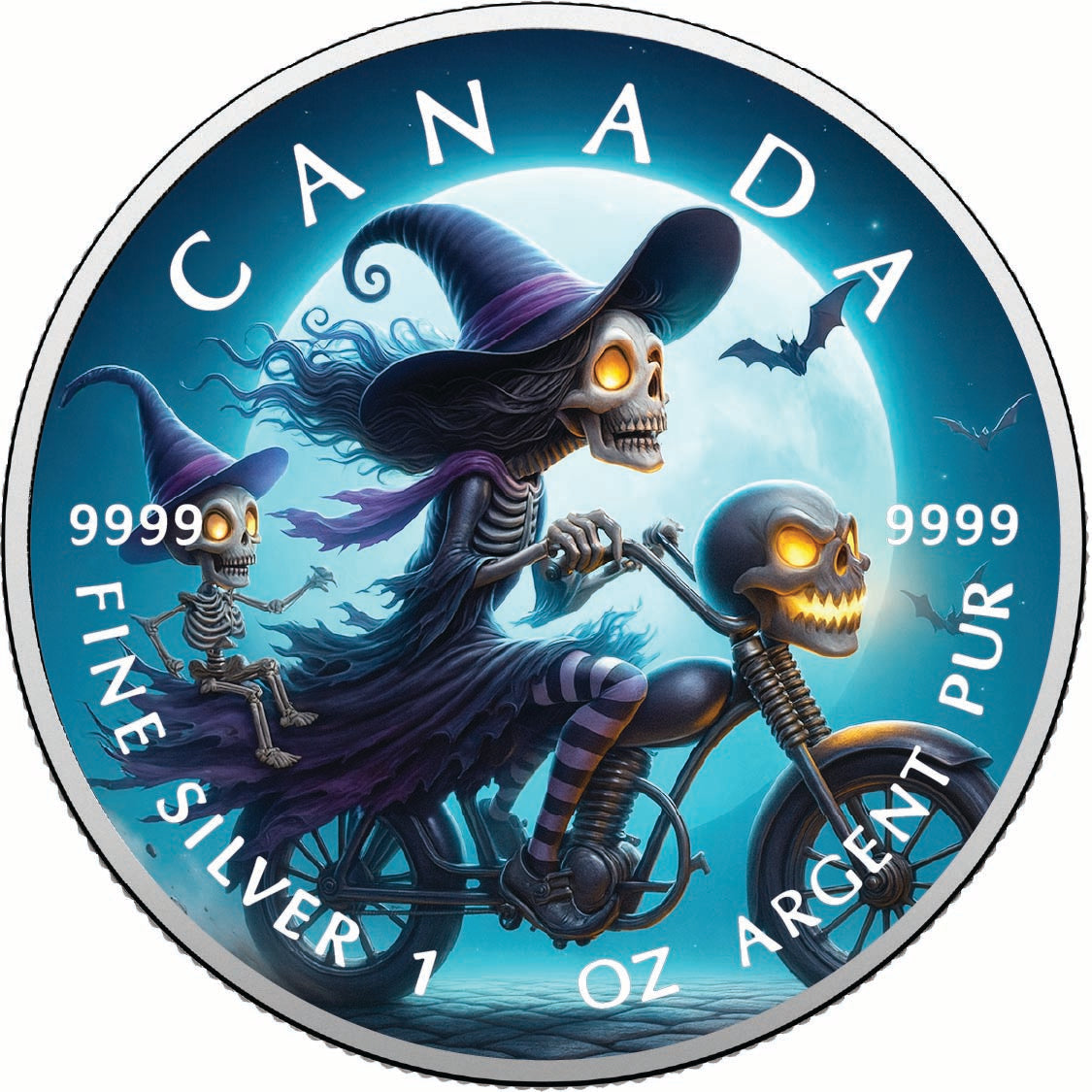 2025 Canada 1oz 9999 Silver BU Witch Riders of the Full Moon Colourized